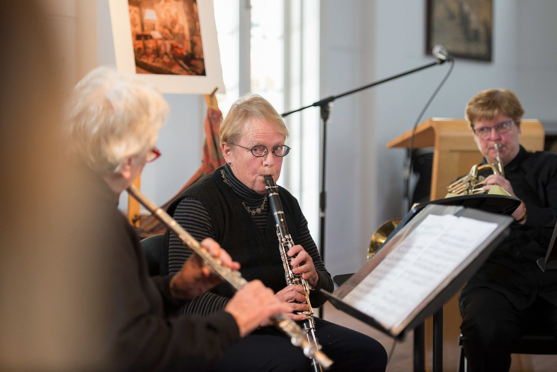 Celebrating my 70th birthday, a solo exhibition of my photographs was held in Sturt Gallery in August 2017, on the theme of music. It included a concert for 200 guests, staged in Cooper Hall, Frensham at the midpoint of the 7 week exhibition. The concert was performed by composers and musicians to link the pictures with music.